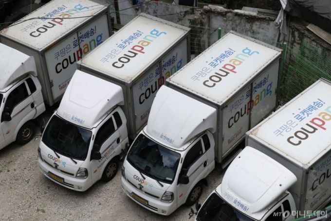 서울 중구 한 쿠팡 차고지에 배달 차량이 주차돼 있다. /사진제공=뉴시스 |