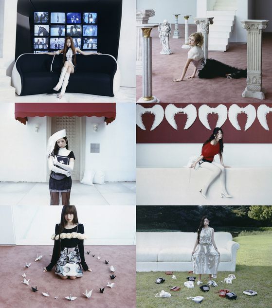 이어 장원영은 히피 펌 스타일 헤어와 레드빛 상의로 신비로운 비주얼을 선보였다. 리즈는 풀뱅 헤어와 길게 늘어뜨린 생머리에 립커프를 매치해 이국적이면서도 몽환적인 매력을 발산했으며, 이서는 잔디밭 위 휴대전화와 수많은 전화기를 활용해 독특한 콘셉트를 고스란히 담아냈다.