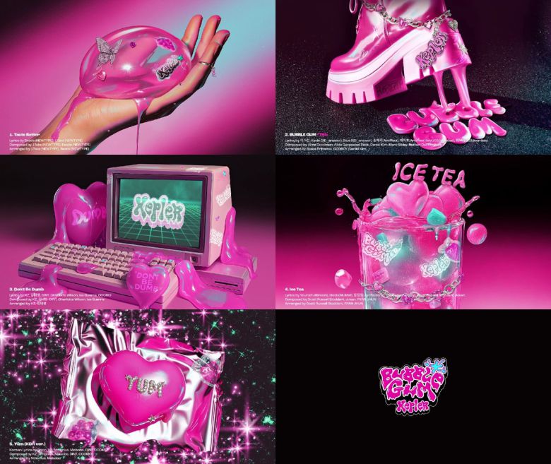 이외에도 레트로 컴퓨터를 하트 풍선껌으로 표현한 디자인부터 핑크와 민트 컬러의 얼음이 흘러넘치며 쿨하면서도 에너지 뿜어내는 디자인까지 극대화한 이미지 영상은 이번 앨범을 통해 파격적인 변신과 비주얼 반전을 예고한 케플러(Kep1er)의 힙한 음악 세계를 더욱 기대케 한다.