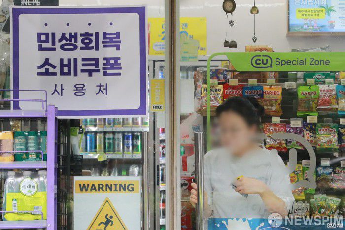 [서울=뉴스핌] 이형석 기자 = 18일 서울 여의도 인근 편의점에 민생지원금 사용 가능 안내문이 붙어 있다. 정부는 21일부터 민생회복 소비 쿠폰을 지급한다. 2025.07.18 leehs@newspim.com |