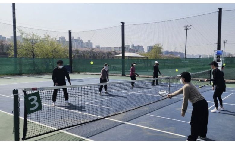 양천구 테니스장에서 피클볼을 즐기고 있는 구민들 모습. 양천구 제공.