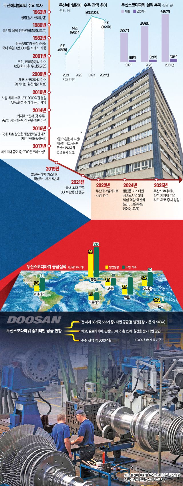 두산에너빌리티(034020)(당시 두산중공업)는 2009년 6600억 원을 투자해 스코다파워 지분 100%를 인수했다. 스코다그룹은 1859년 만들어진 체코 국민 기업으로 창업자인 에밀 스코다는 우리나라로 따지면 정주영 현대그룹 명예회장, 이병철 삼성그룹 창업주에 버금가는 인물이다. 하지만 제2차 세계대전 직후인 1945년 체코(당시 체코슬로바키아) 정부에 의해 국유화된 뒤 실적이 악화됐고 1990년대 그룹 해체 및 민영화의 길을 걸었다. 이때 두산은 10년 넘게 스코다파워와 맺은 협력 관계를 바탕으로 별다른 국민적 반대 없이 체코 정부로부터 인수를 승인받았다.