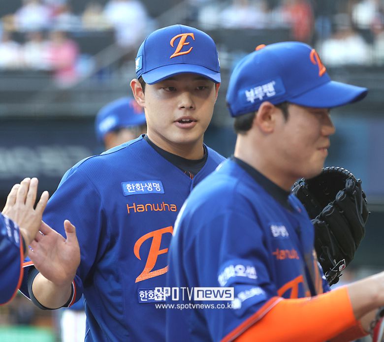 [스포티비뉴스=잠실, 곽혜미 기자] 2025 신한 SOL Bank KBO리그 LG 트윈스와 한화 이글스의 경기가 10일 오후 서울 송파구 잠실야구장에서 열렸다. 1회말 실점 없이 이닝을 마친 한화 문동주가 더그아웃으로 향하고 있다.
