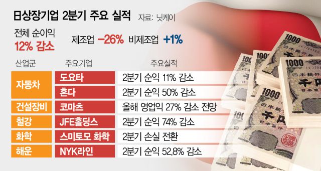 비제조업 회사 가운데 해외 사업 비중이 큰 곳들도 어려움을 겪고 있다. 닛폰유센(NYK)을 비롯한 일본의 3대 해운사는 미 관세 부과에 따른 수요 감소 우려로 컨테이너 운임이 하락하면서 이익이 쪼그라들었다. 5대 상사 가운데 자원 사업을 주력으로 하는 미쓰비시상사와 미쓰이물산 등도 코크스 석탄 사업 등 시장 상황이 부진해지면서 순익이 감소했다.