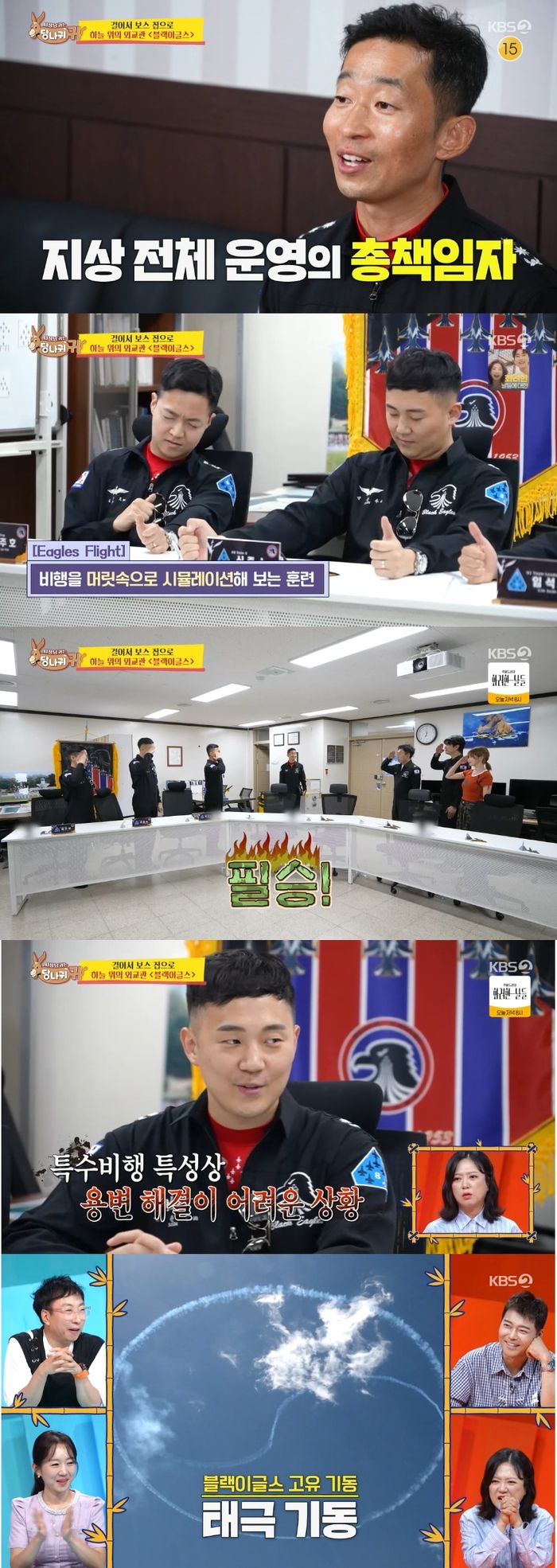이후 블랙이글스는 예능 최초로 에어쇼 훈련을 선보여 스튜디오에 울컥함과 자랑스러움을 선사했다.