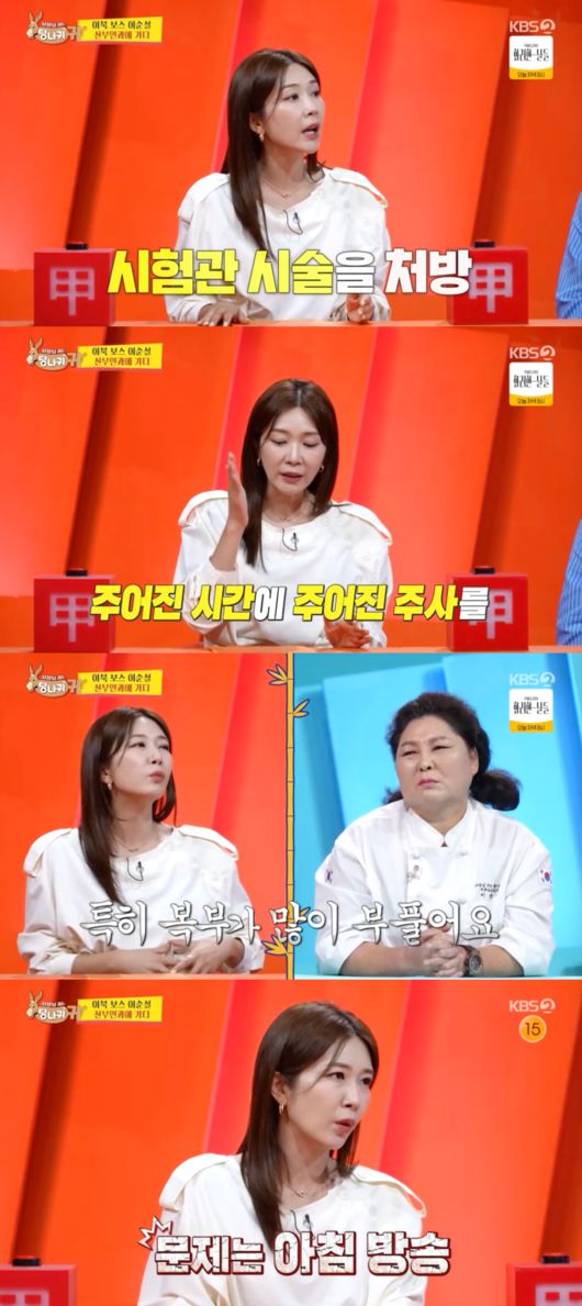 이정민은 “저도 처음에 시험관 시술을 하게 된 이유가 30대 중반이었는데 난소 나이가 42세 였다. 제가 너무 충격을 받았다. ‘내가 왜 이렇게 안 좋을까’ 생각했는데, 문제는 아침방송이었다. 매일 새벽부터 무리한 스케줄을 10년 넘게 하니까 몸에 무리가 됐다”고 털어놨다.