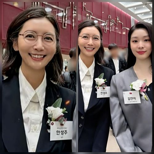 공개된 사진 속 한성주는 모교인 고려대학교 개교 120주년 행사에 참석해 김연아와 다정하게 포즈를 취하고 있다. 블랙 재킷 차림의 한성주는 여전한 동안 미모와 환한 미소로 시선을 사로잡았고, 김연아 역시 단정한 실버 재킷과 화사한 미소로 반가움을 전했다.