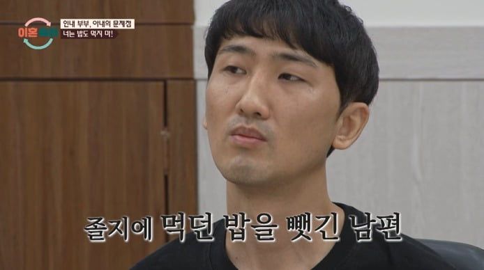 아내는 "산후조리원에 못 가게 하고, 내 눈빛이 이상하다고 그러고"며 "먹지 마. 너희 엄마한테 해달라고 해"며 남편이 먹던 밥상을 치워버렸다.