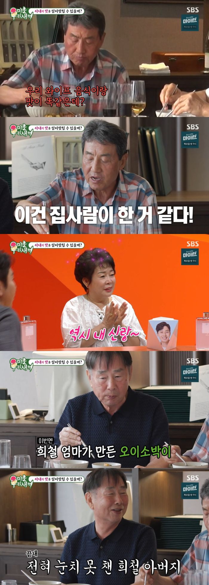 희철 엄마표 오이소박이를 맛본 희철 아빠는 “참 맛있네요. 아 배불러”라며 눈치를 못 챘다.