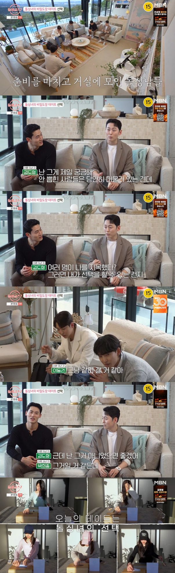 선택 발표에 앞서 거실에 모인 남성 출연자들은 긴장된 기색을 띠며 결과 발표를 기다렸다.