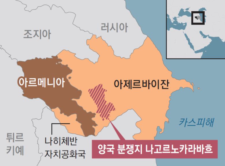 각각 옛 소련에 속했지만 소련 붕괴와 함께 독립한 뒤 내내 영토 분쟁을 벌였던 카스피해 일대의 아제르바이잔과 아르메니아가 도널드 트럼프 미국 대통령의 중재로 8일 평화 선언에 서명했다. 두 나라는 러시아, 튀르키예, 이란 등과 접해 있고, 일대의 원유·천연가스 송유관이 지나는 통로 역할을 해 와 전략적 가치가 높다. 재집권 뒤 인도와 파키스탄, 르완다와 콩고민주공화국, 캄보디아와 태국 등 각 지역의 분쟁을 중재했던 트럼프 대통령이 외교 성과를 추가로 올렸다는 분석이 나온다.