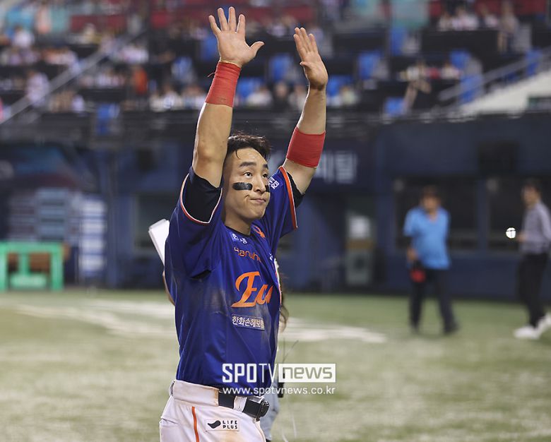루이스 리베라토의 중견수 희생플라이로 3-2 리드를 가져간 한화는 문현빈의 땅볼을 잡은 1루수 천성호가 홈플레이트를 향해 대쉬하던 손아섭을 향해 송구했는데 아웃 타이밍이었으나 이때 손아섭이 기지를 발휘했다. 포수 박동원의 태그를 절묘하게 피하는 동작을 취하면서 세이프 판정을 받은 것이다. 산전수전을 다 겪은 베테랑이기에 가능했던 장면이었다.
