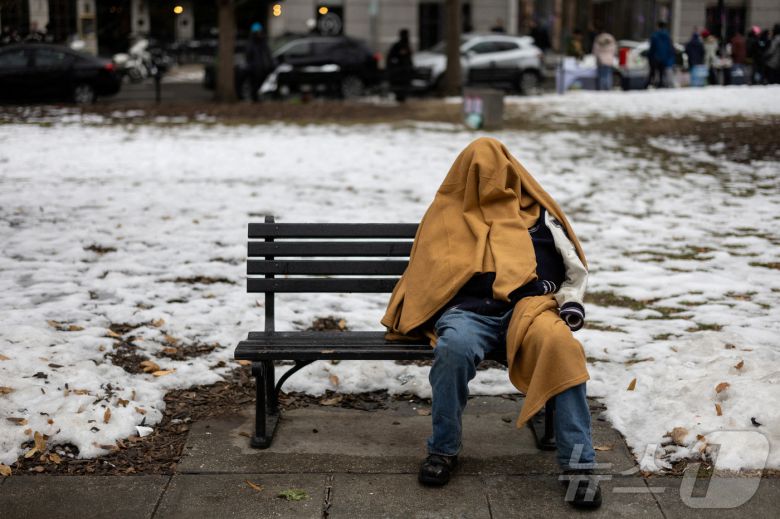 워싱턴 D.C.의 한 공원 벤치에 노숙자가 앉아 있다. 2025.1.18 ⓒ 로이터=뉴스1 |