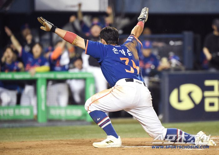 어찌된 영문인지 손아섭이 헤드퍼스트 슬라이딩을 하는 동안 박동원의 글러브는 움직이지 않았다. 손아섭의 오른손이 글러브를 지나쳐 홈을 스칠 때 쯤 박동원이 깨어났다.