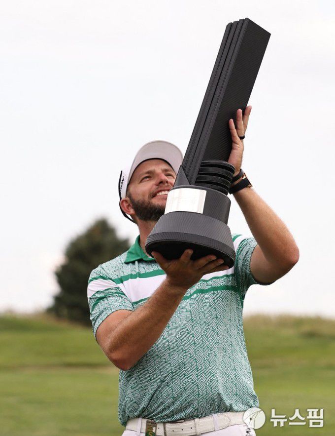 [보일링브룩 로이터=뉴스핌] 박상욱 기자= 딘 버미스터가 11일 LIV 골프 미국 시카고 대회 최종 3라운드에서 우승 트로피를 들고 감격스러운 표정을 짓고 있다. 2025.08.11 psoq1337@newspim.com |