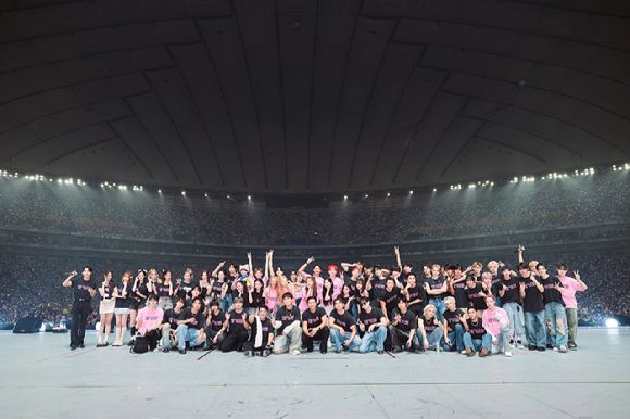 SMTOWN LIVE 2025 도쿄돔 공연에서 출연 가수들이 단체 사진을 촬영하고 있다. [사진=SM엔터테인먼트]