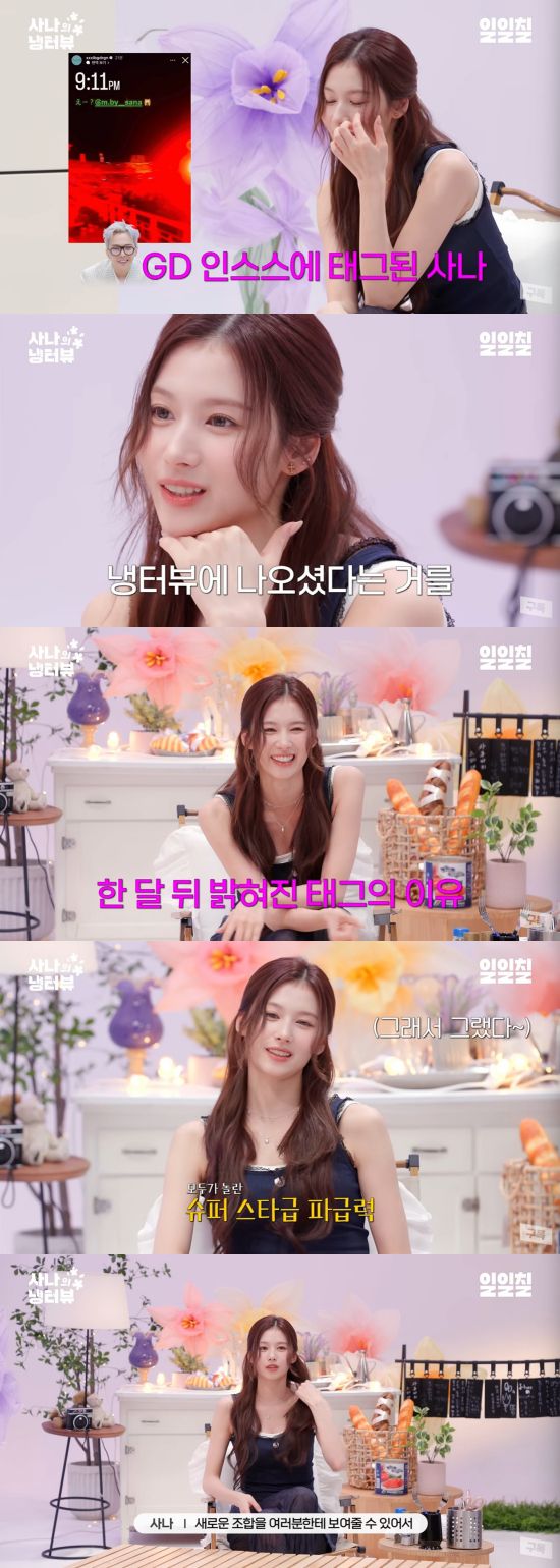 사나는 지드래곤, 덱스와 함께 했던 촬영에 대해 "그날은 진짜 추억이었다. 진짜 급하게 하나 둘 셋 하고 모인 느낌이었다. '냉터뷰' 아니면 절대 모일 수 없었던 조합이었다"고 떠올렸다.