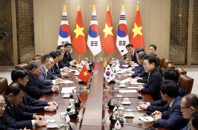 [이데일리 황병서 기자] 이재명 대통령이 11일 국빈 방한한 또 럼 베트남 공산당 서기장과 정상회담을 가졌다. 양국은 한·베트남 ‘포괄적 동반자 관계 심화 공동성명’을 채택했다. 또 2030년까지 교역액 규모를 1500억 달러까지 확대하고 원전, 고속철도 등의 분야에서 협력해 나갈 것을 약속했다. 아울러 이 대통령은 올해 10월 있을 경주 APEC(아시아태평양경제공동체)회의에 참석을 요청했고 또 럼 당서기장은 긍정적으로 화답했다.