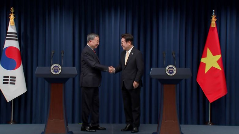 또 럼 당서기장님의 국빈 방한을 다시 한번 진심으로 환영합니다. 새 정부 출범 후 약 두 달 만에 첫 번째 손님으로 당서기장님을 맞이하게 되어 매우 뜻깊게 생각합니다. 오늘 회담에서 저와 당서기장님은 세계질서 변화에 실용적으로 대처하는 글로벌 책임 강국을 지향하는 대한민국과, 2045년 고소득 선진국 진입을 추구하는 베트남 간의 협력이 그 어느 때보다 중요하다는 데 의견을 같이하였습니다.