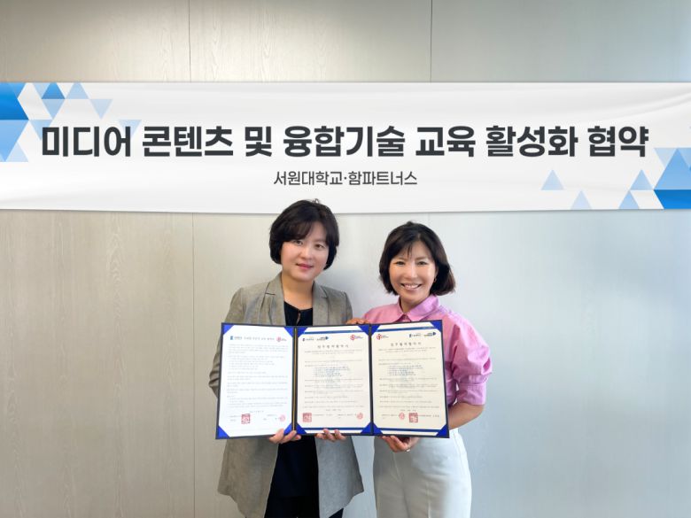 종합 커뮤니케이션 그룹 ㈜함파트너스는 서원대학교 문화예술체육대학 미디어콘텐츠학부와 미디어콘텐츠 및 융합기술 분야의 실무 교육과 인재 양성을 위한 업무협약(MOU)을 체결했다고 11일 밝혔다.