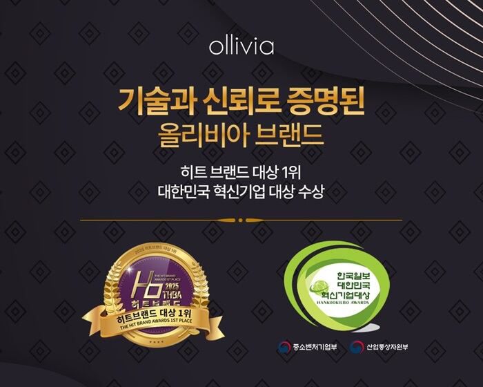 프리미엄 홈케어 브랜드 ‘올리비아(ollivia)’가 주식회사 그길의 기술력으로 개발한 ‘더올리어 S1’ 뷰티 디바이스를 통해 ‘2025 대한민국 혁신기업 대상’을 수상했다.