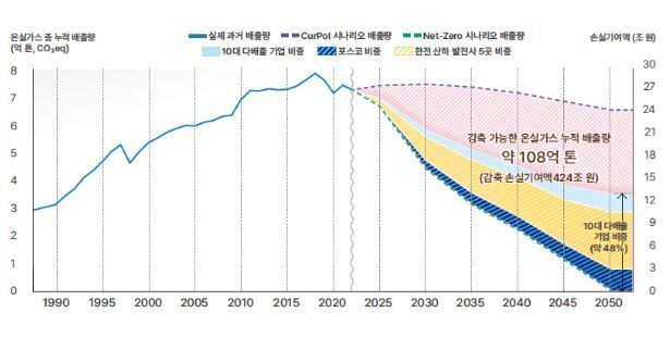 비영리단체 기후솔루션은 11일 ‘기후 위기, 누가 얼마나 책임져야 하는가: 한국 10대 배출 기업의 폭염 손실기여액 분석’ 보고서를 발간하고 향후 대응이 없을 경우 2050년까지 피해액이 720조원으로 불어날 수 있다고 경고했습니다.