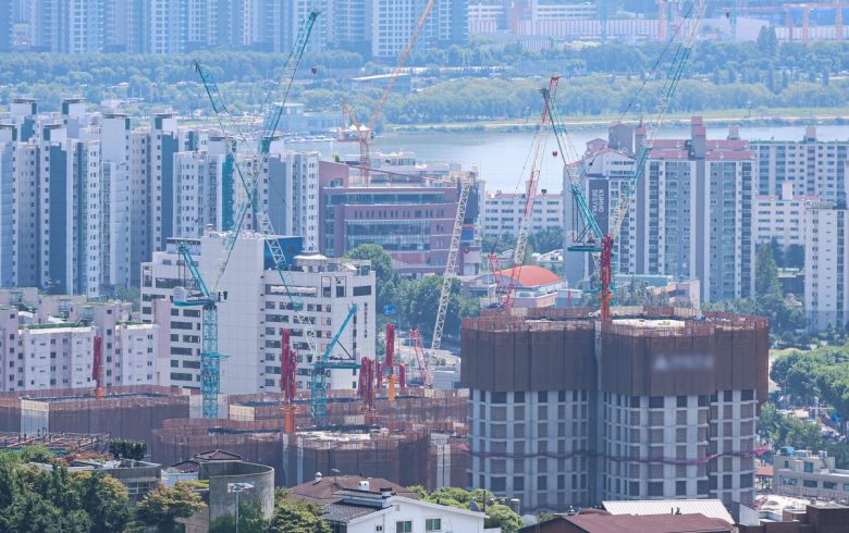 정부가 ‘산업재해와의 전쟁’을 선포하면서 건설업계가 바짝 긴장하고 있다. 11일부터는 건설현장 불법 하도급에 대한 대대적인 단속까지 시작돼 긴장감이 한층 높아졌다. 주요 건설사들은 현장 안전보건 체계 현황을 점검하고, 시공 현장의 안전관리 조치 및 교육을 강화하고 있다. 지난 10일 서울 남산타워 전망대에서 바라본 건설현장 모습. 뉴시스 |