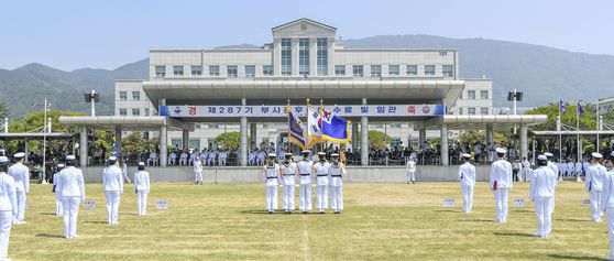 지난 5월 30일 경남 창원시 진해구 해군교육사령부 연병장에서 '제287기 해군 부사관 후보생 임관식'이 열리고 있다. 사진 해군 |