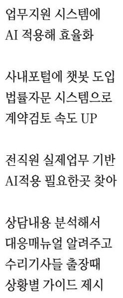 일일이 메뉴를 찾아서 클릭할 필요 없이 업무 등록과 회의실 예약, 공지사항 조회까지 AI와의 대화로 처리할 수 있도록 업무 포털에 AI를 적용한 것도 주목된다.