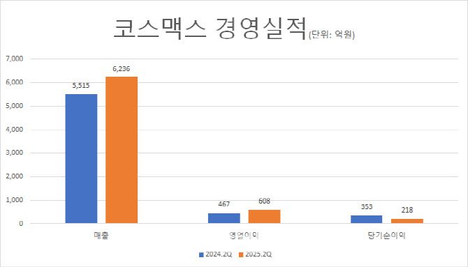 코스맥스(192820)는 지난 2분기 매출(이하 연결기준)이 전년동기대비 13.1% 증가한 6236억원을 기록했다고 11일 공시했다. 같은 기간 영업이익도 30.2%나 늘어난 608억원으로 집계됐다. 영업이익도 분기 기준 사상 최대치다. 이에 따라 상반기 기준 매출액은 1조 2121억원, 영업이익은 1122억원으로 각각 전년대비 12.4%, 21.7% 증가했다.