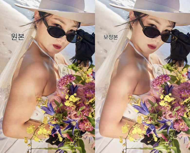 공개한 화보 원본과 보정본은 큰 차이가 없었다. 일부만 보정했던 것. 이 화보의 원본 사진 역시 온라인을 뜨겁게 달궜다.