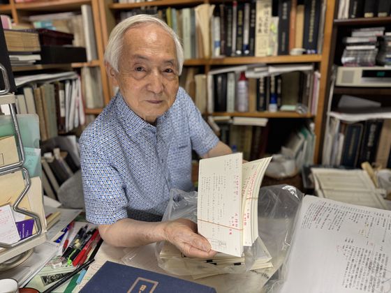 좌식책상 위에 놓인 자그마한 백등이 두툼한 메모지 위 정갈한 글씨를 비추고 있다. 한반도에서 일본으로 전해진 고서(古書)의 이야기들이다. 조선 서지학의 최고 권위자, 후지모토 유키오(藤本幸夫) 도야마(富山)대 명예교수가 반백년을 쏟아부어 일궈낸 거대한 기록이기도 하다. 일본 전역에 산재한 고문헌 5만여권을 추적한 ‘일본 현존 조선본 연구’는 현재 진행형. 구도자의 길을 가듯 지금도 매일 이른 아침부터 밤까지 앉은뱅이책상 앞에 앉는 84세 백발의 학자를 지난달 만났다.