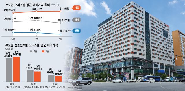그동안 오피스텔은 대지지분이 적고 관리비 부담이 큰데다가 같은 면적의 주택형 아파트보다 적은 실 면적 등으로 거래가 많지 않았다. 하지만 아파트 매매가격이 올해 상반기에 급등하면서 상대적으로 오피스텔 가격이 덜 오른데다 대출 규제를 받지 않아 실거주 수요자들 사이에서 ‘아파텔’로 불리는 대형 면적 오피스텔 매수세가 커진 것으로 분석된다. 실제로 KB국민은행의 7월 오피스텔 통계에 따르면 지난달 수도권 오피스텔 매매 평균가격은 2억 7011만 원으로, 전월(2억 7032만 원)대비 21만 원 낮아졌다. 하지만 대형 오피스텔 매매 평균가격은 8억 5037만 원으로, 전월(8억 4876만 원)보다 오히려 올랐다. 반면 중형은 3억 2393만 원에서 3억 2383만 원으로, 소형은 1억 9665만 원에서 1억 9663만 원으로 전월보다 평균 매매가격이 하락했다. 특히 서울 대형 오피스텔의 지난달 매매가격 상승률은 0.41%로 전체 평균 매매가격 상승률인 0.11% 대비 3배 넘게 높았다.