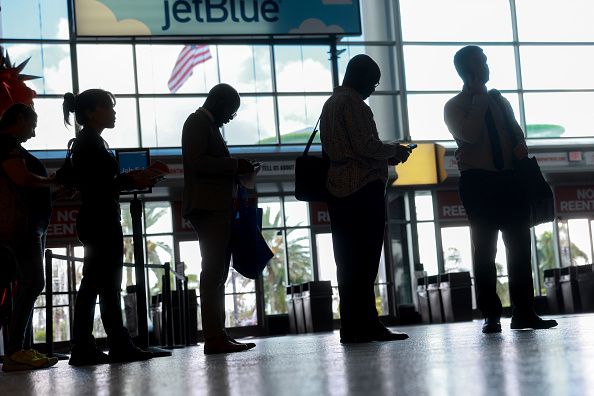 미국 플로리다주에서 열린 한 취업 박람회에 구직자들이 줄지어 선 모습. [게티이미지]