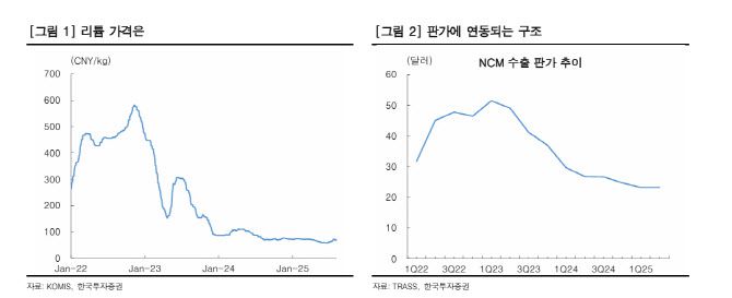 리튬 가격 반등은 국내 양극재 업체들의 실적에 긍정적으로 작용한다. 판매 단가 인상과 재고자산평가손익 개선을 통해 매출과 수익성이 동반 상승할 수 있기 때문이다. 김 연구원은 “중국 광산의 잇따른 생산 중단은 리튬 가격 추가 하락 가능성을 낮추고, 상승 시 셀·자동차 업체들의 선구매 수요를 유도할 수 있다”고 밝혔다.