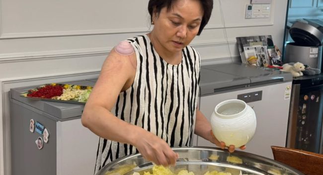 그는 "봄에 해준 상추 물김치 맛있었다 했는데 이번엔 수박 물김치를 해줘야지. 수박 물김치는 핑계고 그녀가 보고싶다. 동생아~~ 잘 견디고 있쟝? 담그는 내내 네 생각하고 기도하고 그랬네. 늘 얘기하지만 많은 사람이 기도해. 외로워 말고 허망해 하지도 말고 그저 네 몸만 생각해. 잘 치료받고 완쾌한다는"이라고 전했다.