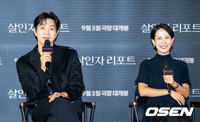 [OSEN=박준형 기자] 12일 오전 서울 용산아이파크몰 내 용산 CGV에서 영화 '살인자 리포트'(감독 조영준) 제작보고회가 진행됐다.‘살인자 리포트’는 특종에 목마른 베테랑 기자 선주(조여정 분)에게 정신과 의사 영훈(정성일 분)이 연쇄살인을 고백하는 인터뷰를 요청하면서 벌어지는 이야기를 다룬 작품으로, 조여정과 정성일 두 베테랑 배우의 숨 막힐 정도로 치열한 연기 대결을 예고하며 기대감을 모으고 있다.배우 정성일과 조여정이 미소 짓고 있다. 2025.08.12 / soul1014@osen.co.kr |