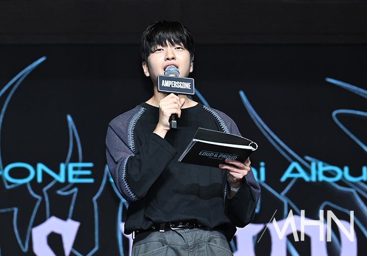 (MHN 이현지 기자) 방송인 유재필이 12일 오후 서울 강서구 스카이아트홀에서 열린 앰퍼샌드원 미니 3집 'LOUD & PROUD' 쇼케이스 진행을 하고 있다.