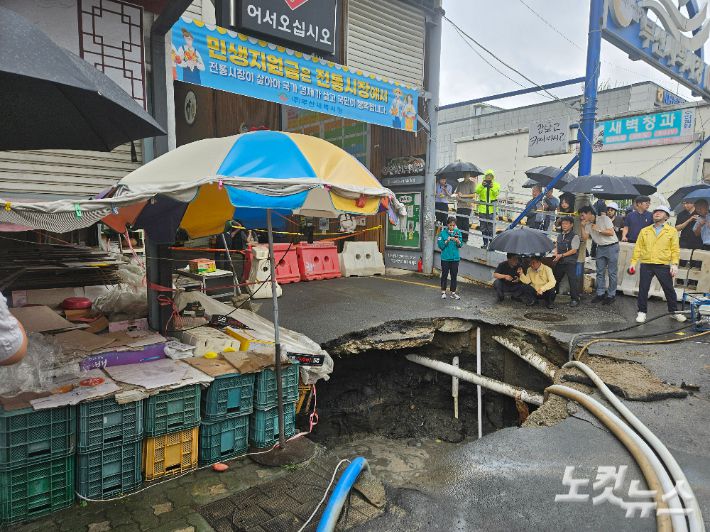 과일가게 주인 강윤자(70·여)씨는 "직접 눈으로 싱크홀을 보니 엄청 겁나고 불안하다. 이게 진짜인가 싶다"며 "'어쩌나, 어쩌나' 하면서 과일을 한쪽으로 옮기고 있다. 안 그래도 여름이라 과일이 금방 상해버리는데 제때 못 팔게 돼 다 썩을 것 같다"며 한숨을 내쉬었다.