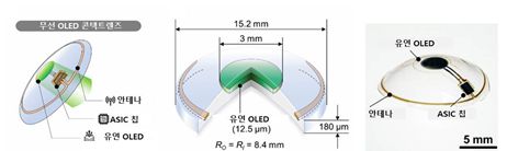 무선 OLED 콘택트렌즈 모식도와 실제 기기 사진