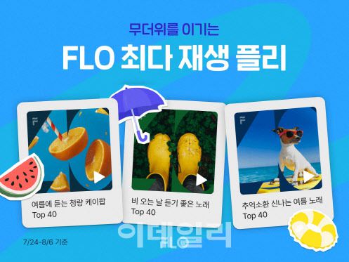 [이데일리 윤정훈 기자]드림어스컴퍼니(060570)의 음악플랫폼 플로(FLO)가 여름 휴가철을 맞아 플로 이용자들이 가장 많이 들은 음악 플레이리스트 순위를 12일 공개했다. 무더위를 잊을 수 있는 여름 테마로 큐레이션된 플레이리스트들이 상위권을 대거 차지한 것으로 나타났다.