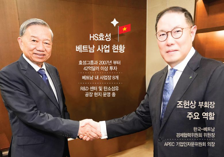 20년 전부터 HS효성은 베트남 호찌민, 동나이, 꽝남 등지에 대규모 생산기지를 구축하며 베트남 내 최대 한국 투자 기업 중 하나로 성장해 왔다. 조 부회장은 이러한 투자 확대 과정에서 베트남 정부와의 신뢰 구축과 긴밀한 소통에 앞장서 왔으며, 양국 간 경제 파트너십을 공고히 하는 데 결정적으로 기여했다.