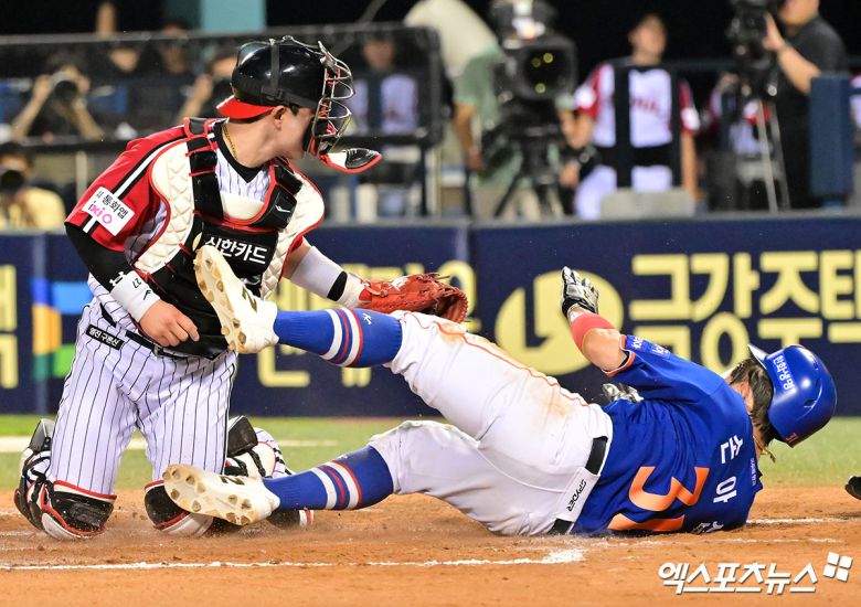 이어 "한 가지 잘못한 건 타이밍에 여유가 있었단 점이다. 홈 플레이트보다 더 앞쪽으로 갔어야 했는데 오히려 너무 기본에 충실하다 보니까 앞에서만 딱 대고 있었다. 그런 부분을 분명히 전달했다"며 "바깥에서 볼 때는 왜 저러나 할 수 있는데 본헤드 플레이도 절대 아니다"라고 강조했다.