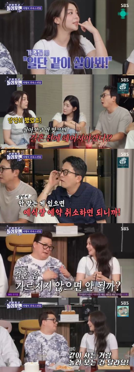 이어 "그렇게 1년동안 동거를 했는데 너무 잘 맞아서 결혼까지 하게 됐다"면서 "동거하면서 안 맞으면 헤어져야겠다는 생각을 그 때는 당연히 했다. 예약한 예식장은 취소하면 되니까"라고 말해 눈길을 끌었다.