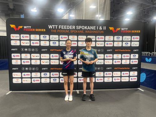 WTT 피더 스포캔 혼합복식 우승을 차지한 양하은(왼쪽)과 김우진 |