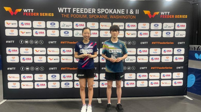 ▲ WTT 피더 스포캔 혼합복식 우승을 차지한 양하은(왼쪽)과 김우진