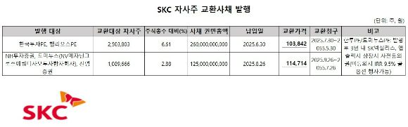 SKC, 자사주 2.8% 기초 EB 발행...SK넥실리스·앱솔릭스 IPO 대체 자금
