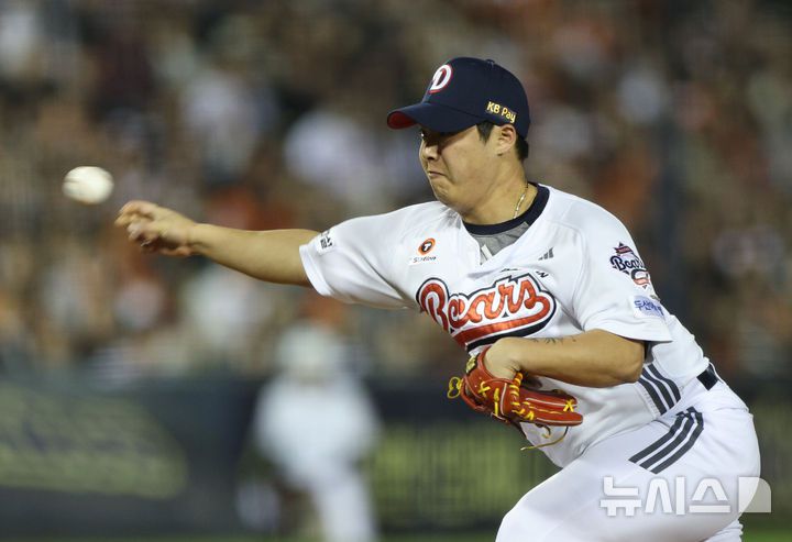 [서울=뉴시스] 고범준 기자 = 8일 서울 송파구 잠실야구장에서 열린 2025 KBO리그 한화 이글스와 두산 베어스의 경기, 7회초 두산 박치국이 역투하고 있다. 2025.04.08. bjko@newsis.com |