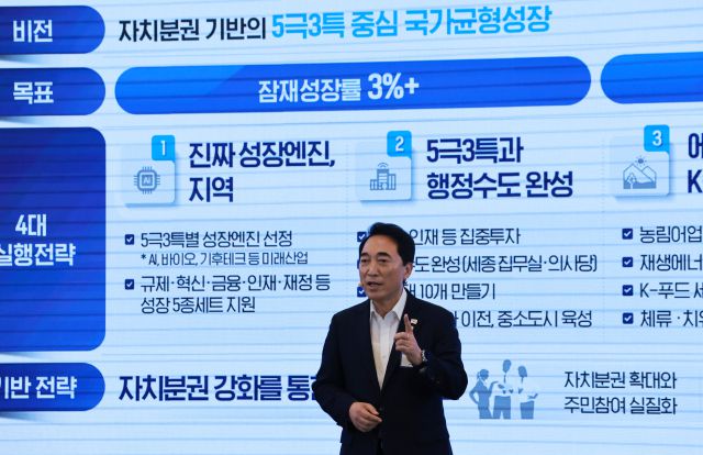 국정기획위 국가균형성장특별위원장인 박수현 더불어민주당 의원은 “‘5극3특’마다 특화된 첨단산업을 배치하는 전략을 세워서 지역마다 첨단산업을 일으키고 일자리를 만들어낼 것”이라며 “어느 지역에서나 고르게 교육·문화·복지 혜택을 누릴 수 있도록 할 것”이라고 밝혔다.