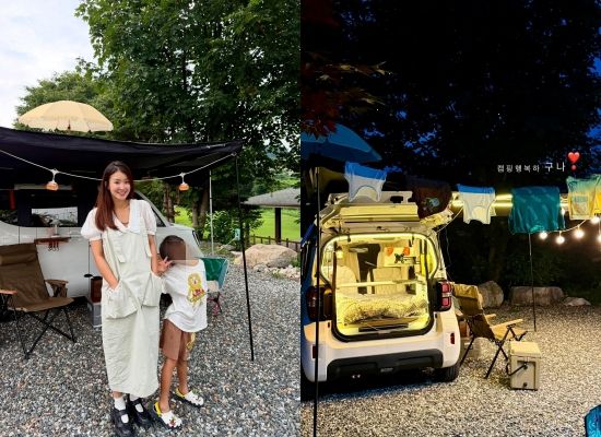 사진 속에는 지인들과 함께 계곡으로 차박 캠핑을 떠난 이시영 모자(母子)의 모습이 담겨 있다. 이시영의 아들은 엄마의 지인들과 즐거운 시간을 보내며 잊지 못할 추억들을 쌓았고, 이시영은 "캠핑 행복하구나"라는 멘트를 덧붙이며 행복 가득한 마음을 표출했다.